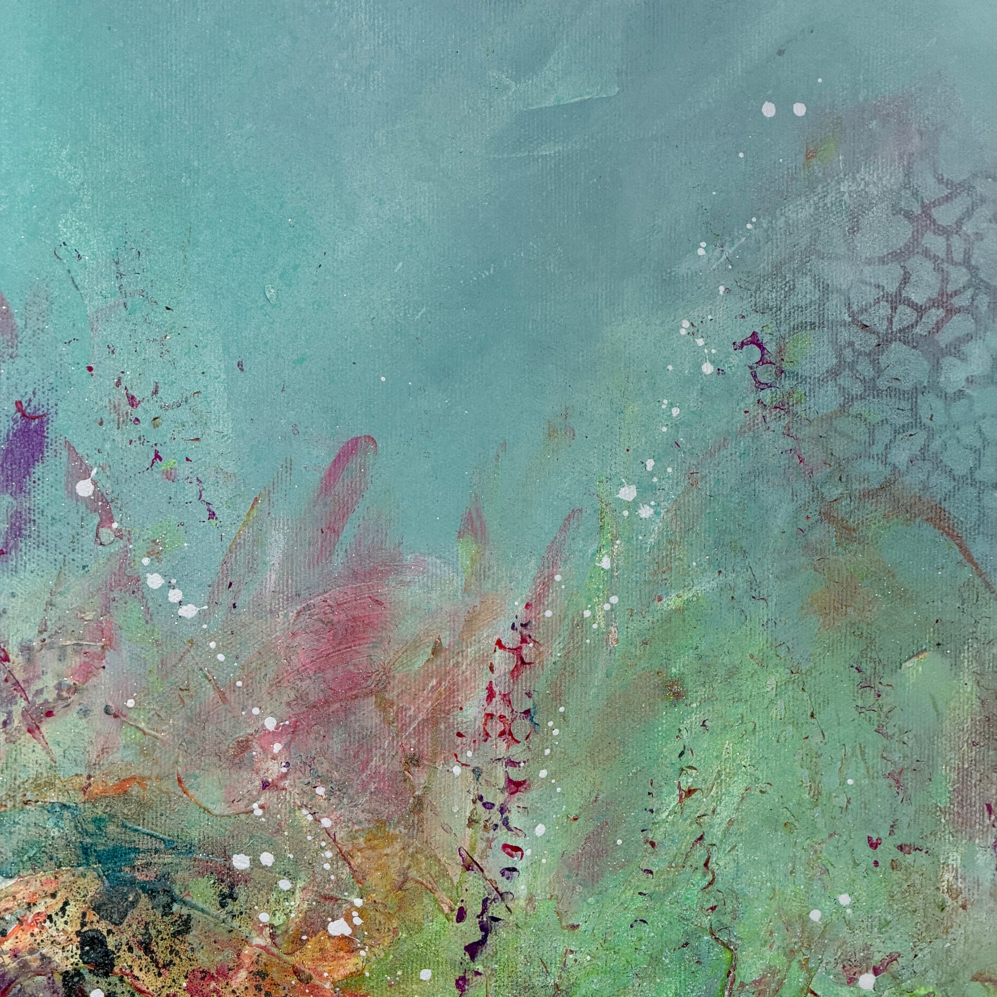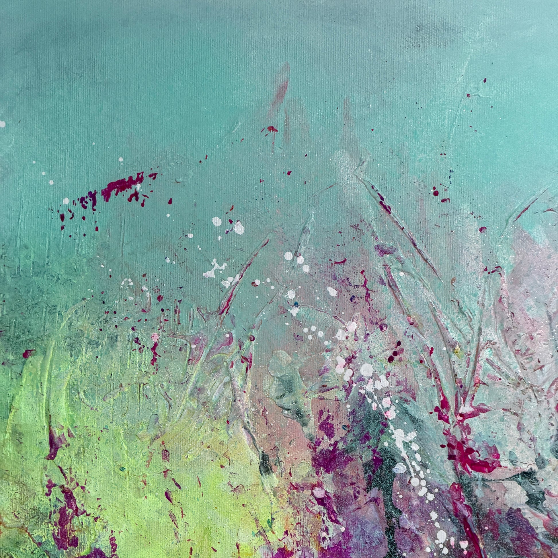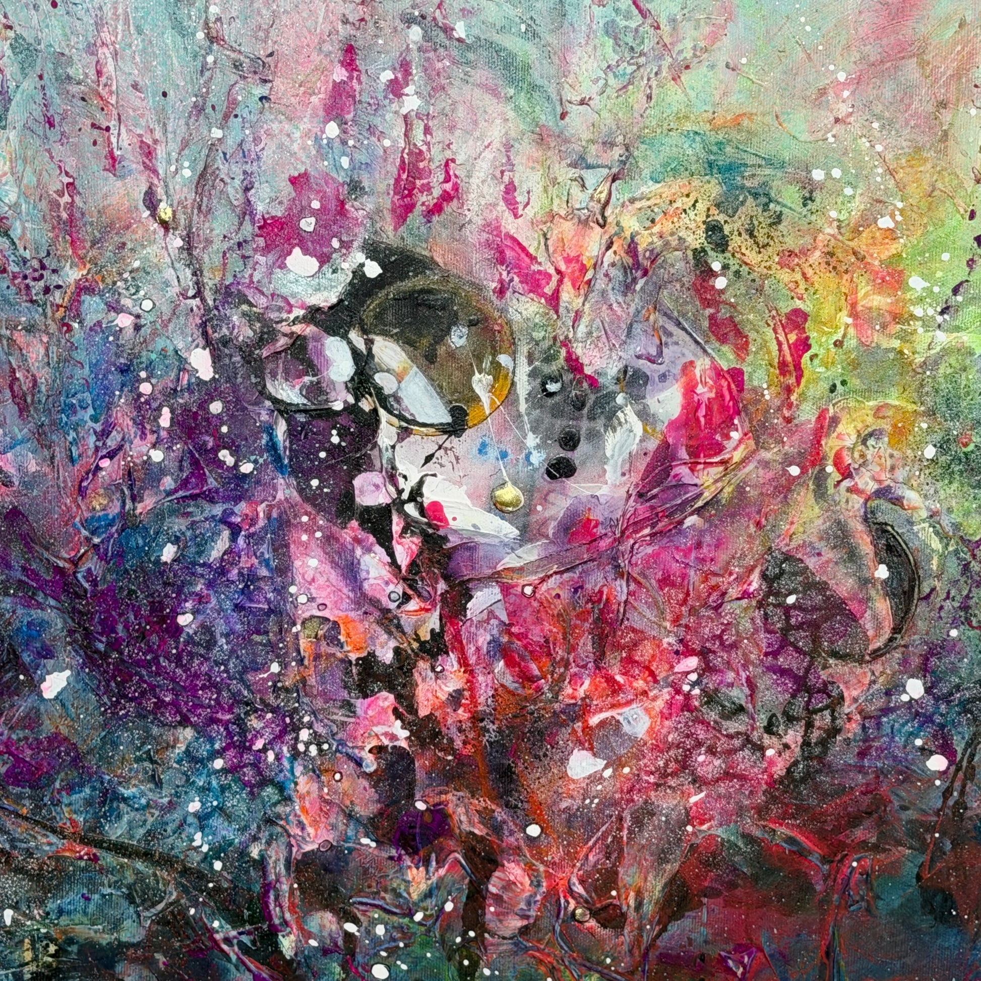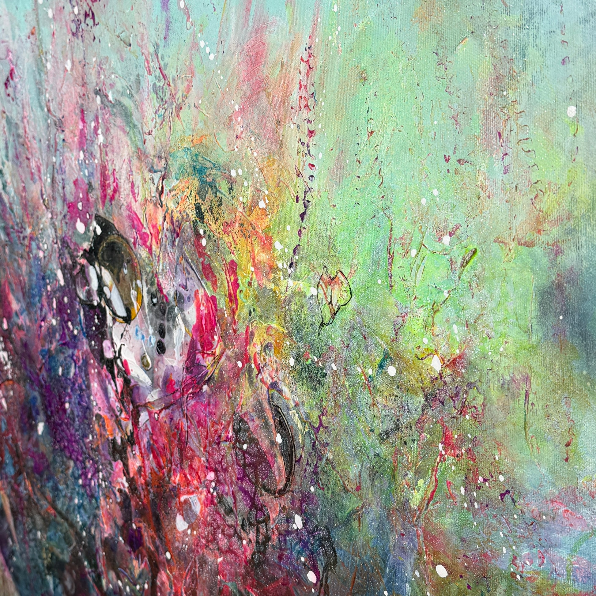 Was zunächst wie eine Explosion aus Blüten, Funken und farbigem Nebel erscheint, entpuppt sich bei genauerem Hinsehen als ein Ort des Übergangs: ein Raum, in dem Energie Form annimmt und wieder vergeht, in dem Farben miteinander flüstern und sich zu flüssigen Gestalten verweben.