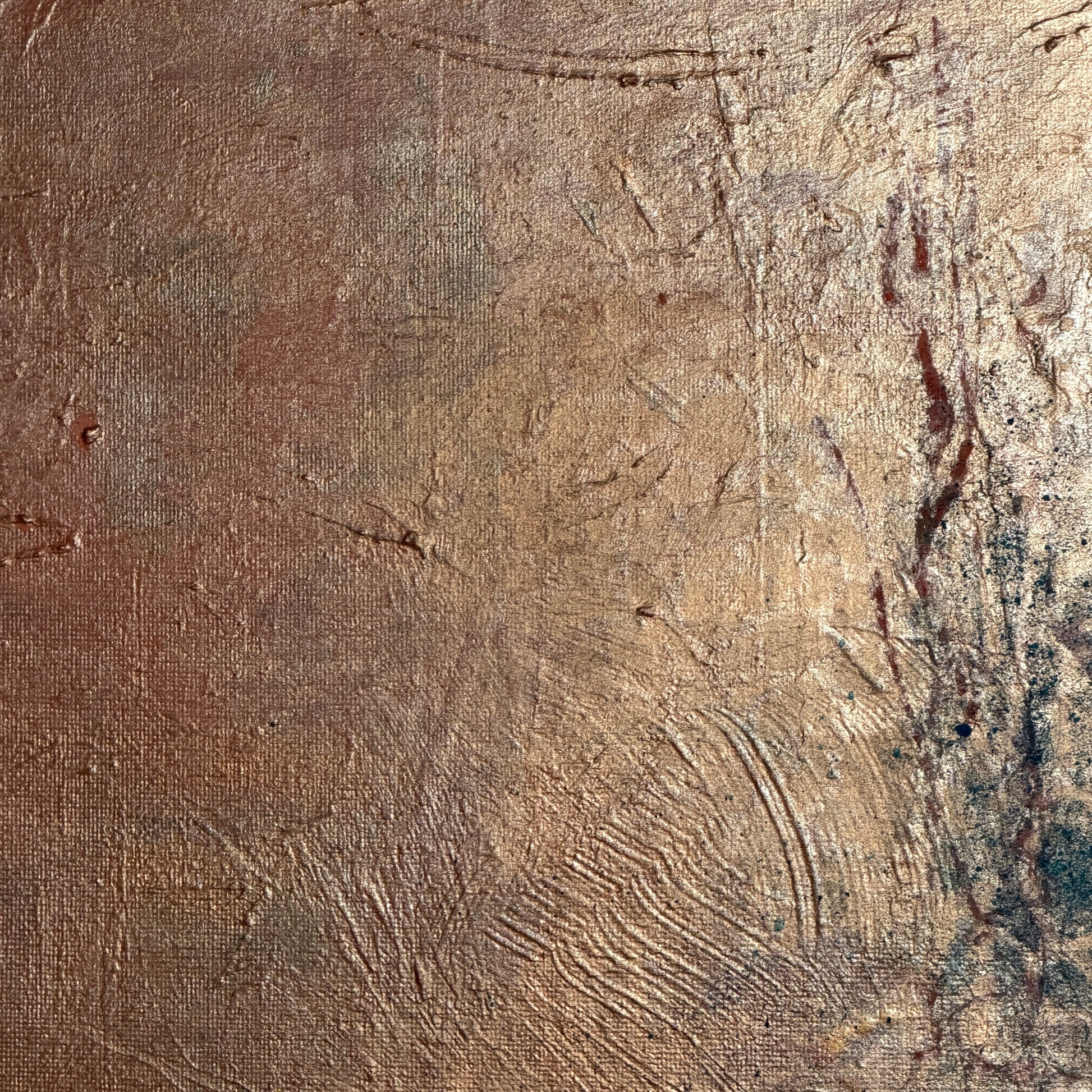 Die Oberfläche trägt Spuren, fast wie gelebte Zeit. Nichts ist glatt oder perfekt – und genau darin liegt ihre Schönheit. Das Werk lädt dazu ein, innezuhalten, näherzutreten, sich zu verlieren. Je länger man schaut, desto mehr entdeckt man: feine Bewegungen, leise Kontraste, ein stilles Leuchten.