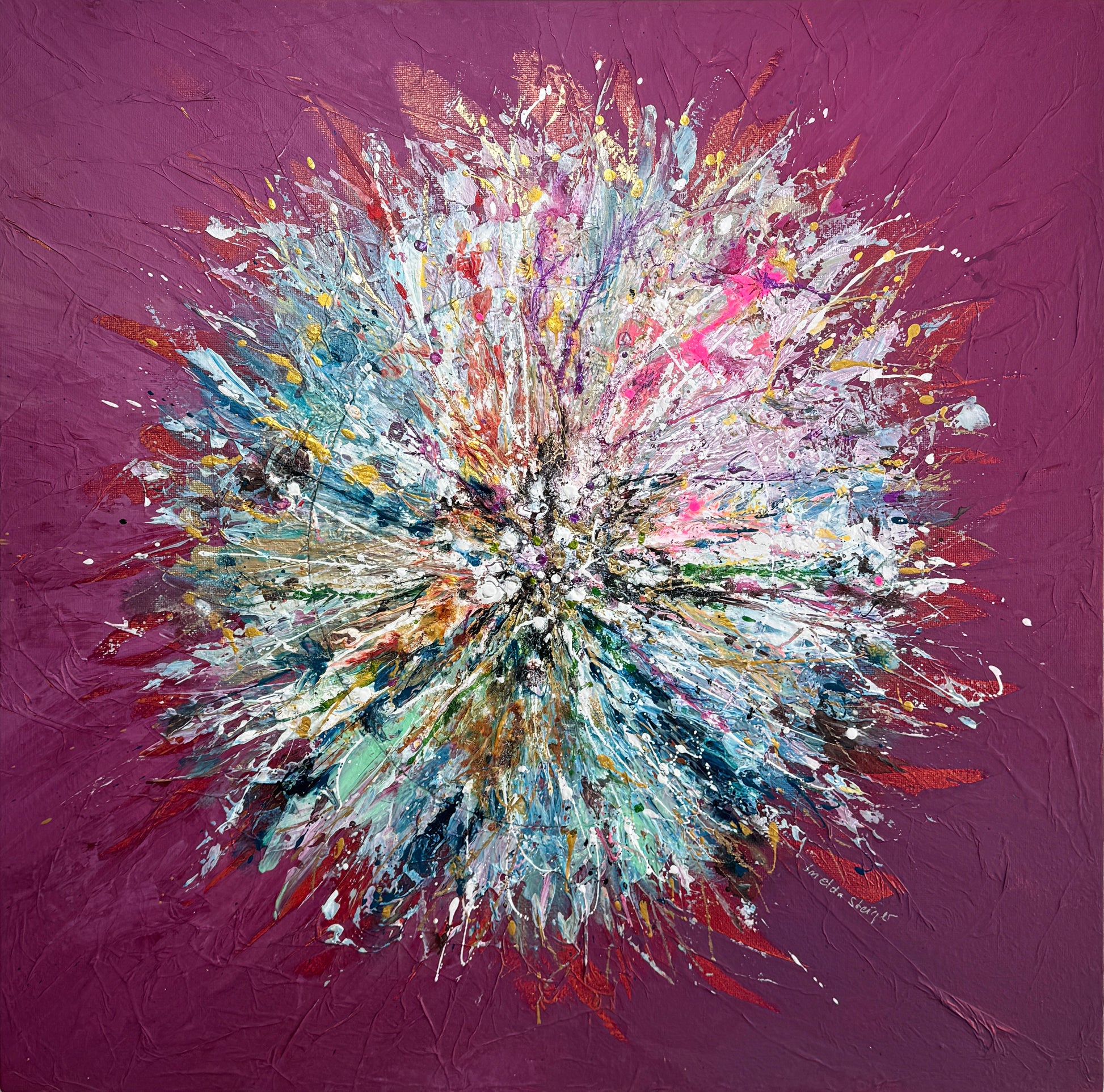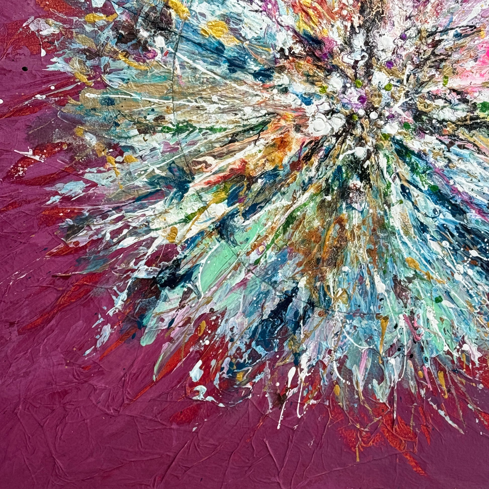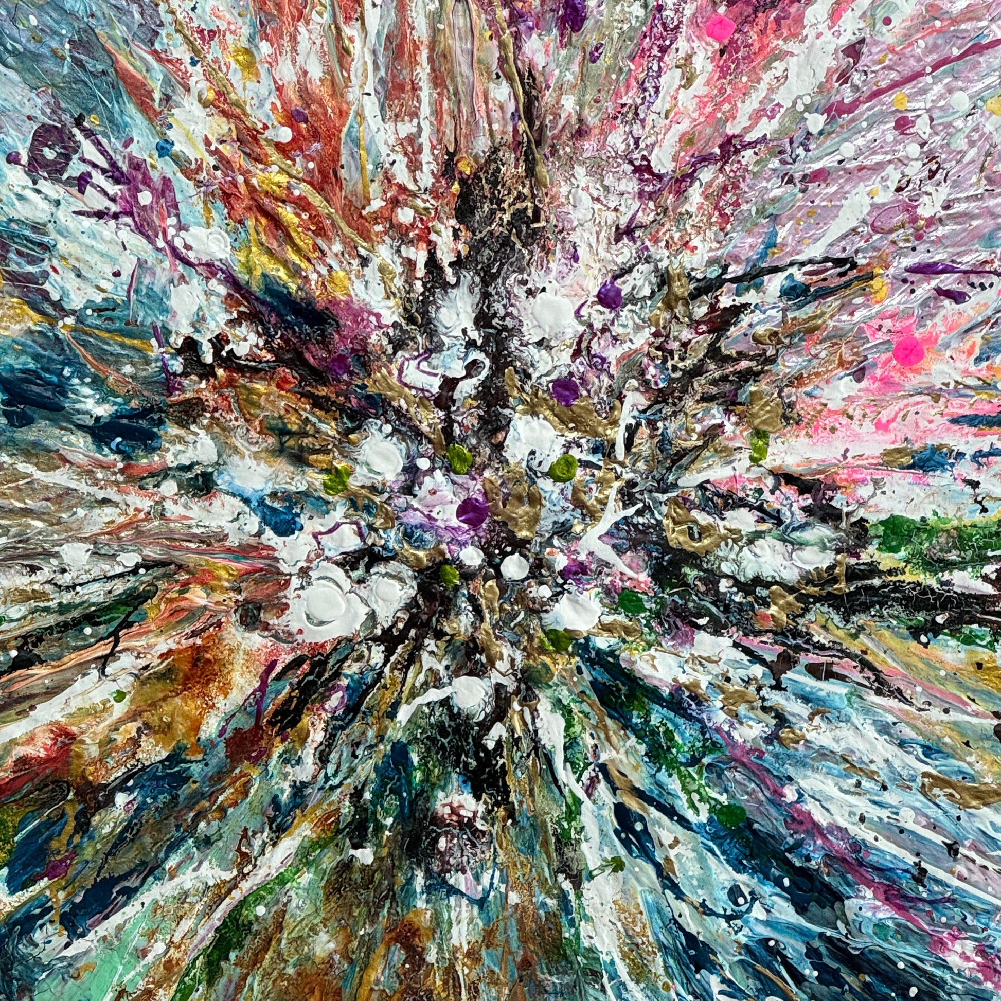 So entstand dieses Werk nicht aus Planung, sondern aus einem Augenblick des Loslassens, in dem die Seele sprach und die Hände folgten. Es ist das Abbild eines inneren Urknalls – die Geburt eines Sterns, eingefangen in Farbe und Bewegung.