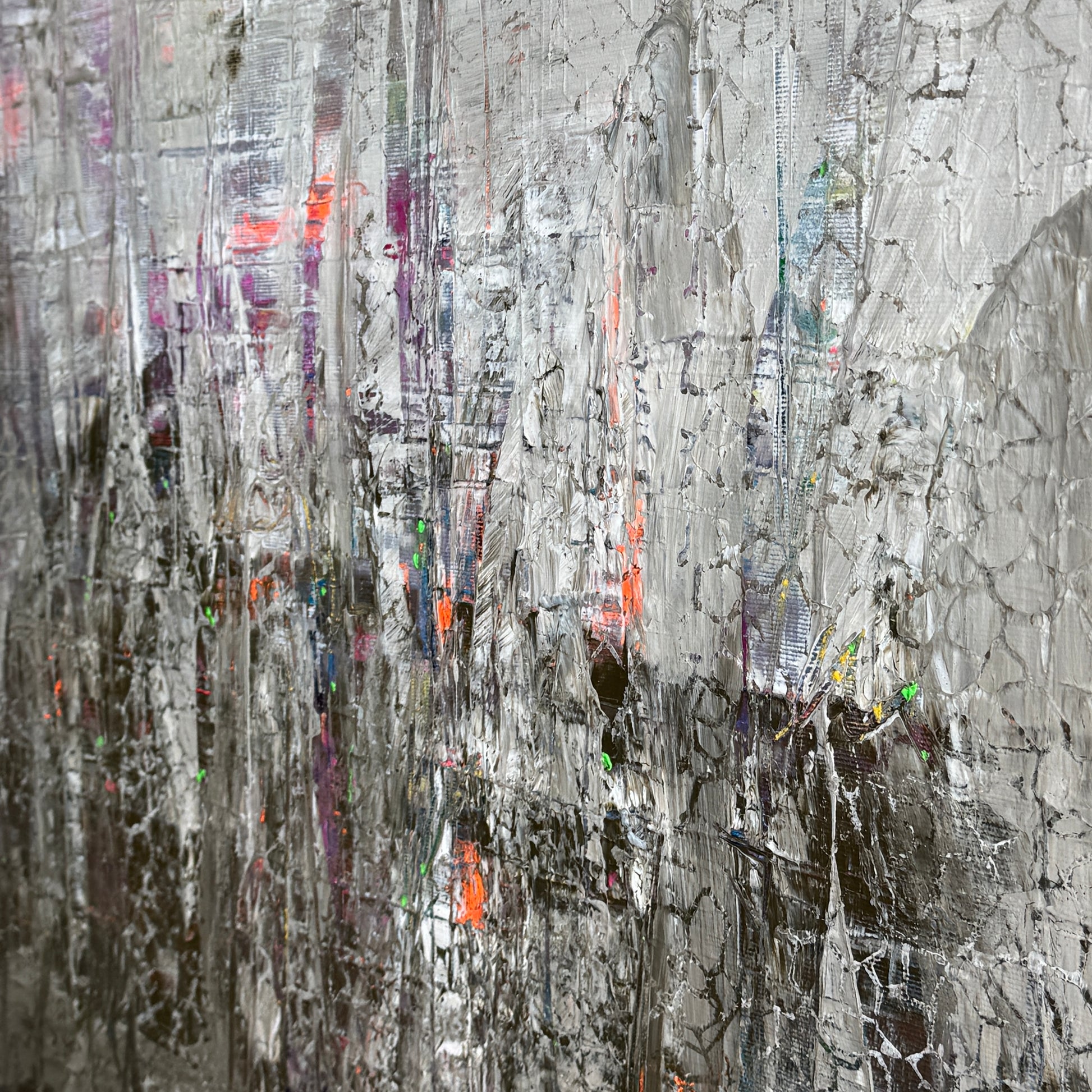 „Lichtblick“ ist ein faszinierendes abstraktes Kunstwerk, das sanfte Grautöne mit zarten Farbakzenten vereint. Wie ein Nebelschleier, der sich langsam hebt, offenbart das Bild verborgene Strukturen und geheimnisvolle Tiefe. Feine Risse und dezente Leuchtpunkte in Orange, Pink und Grün erinnern an das Erwachen neuer Hoffnung – ein stiller Moment, in dem Licht die Dunkelheit durchbricht. Dieses Werk lädt zum Träumen ein und schenkt jedem Raum eine Atmosphäre von Harmonie, Inspiration und stillem Optimismus.