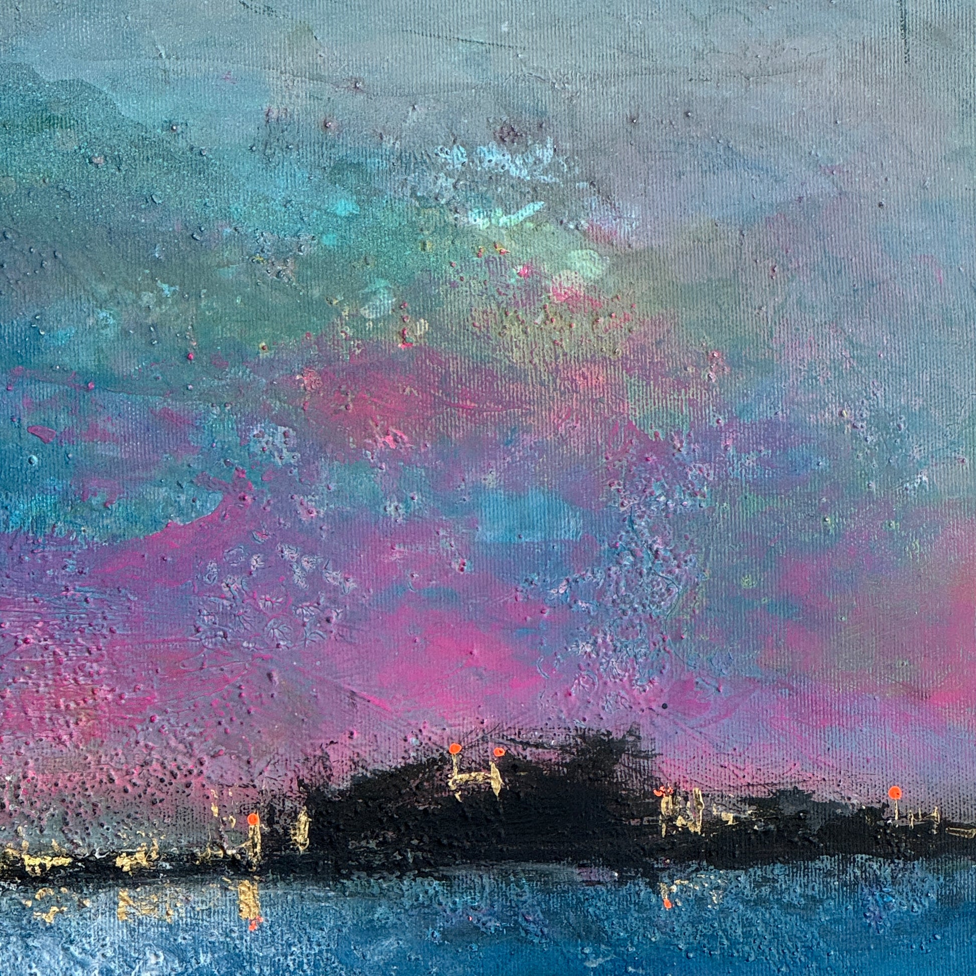 „Fernes Leuchten“ ist nicht nur ein Gemälde, sondern ein Erlebnis – ein Hauch von Ewigkeit, der jedem Raum eine Aura von Eleganz und erlesener Raffinesse verleiht.