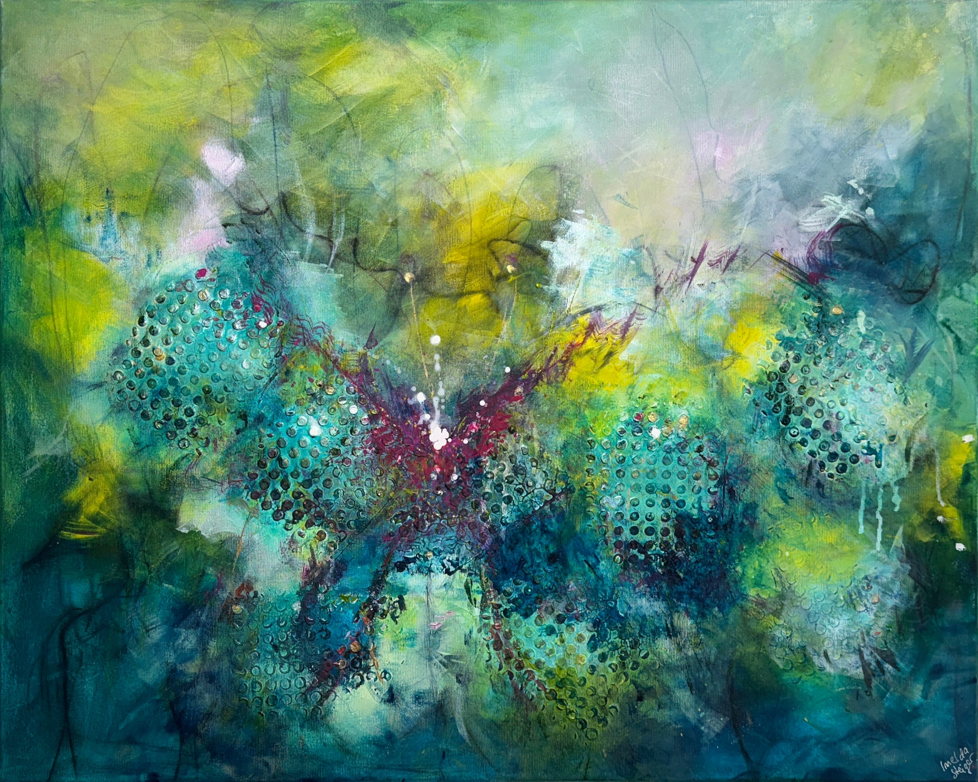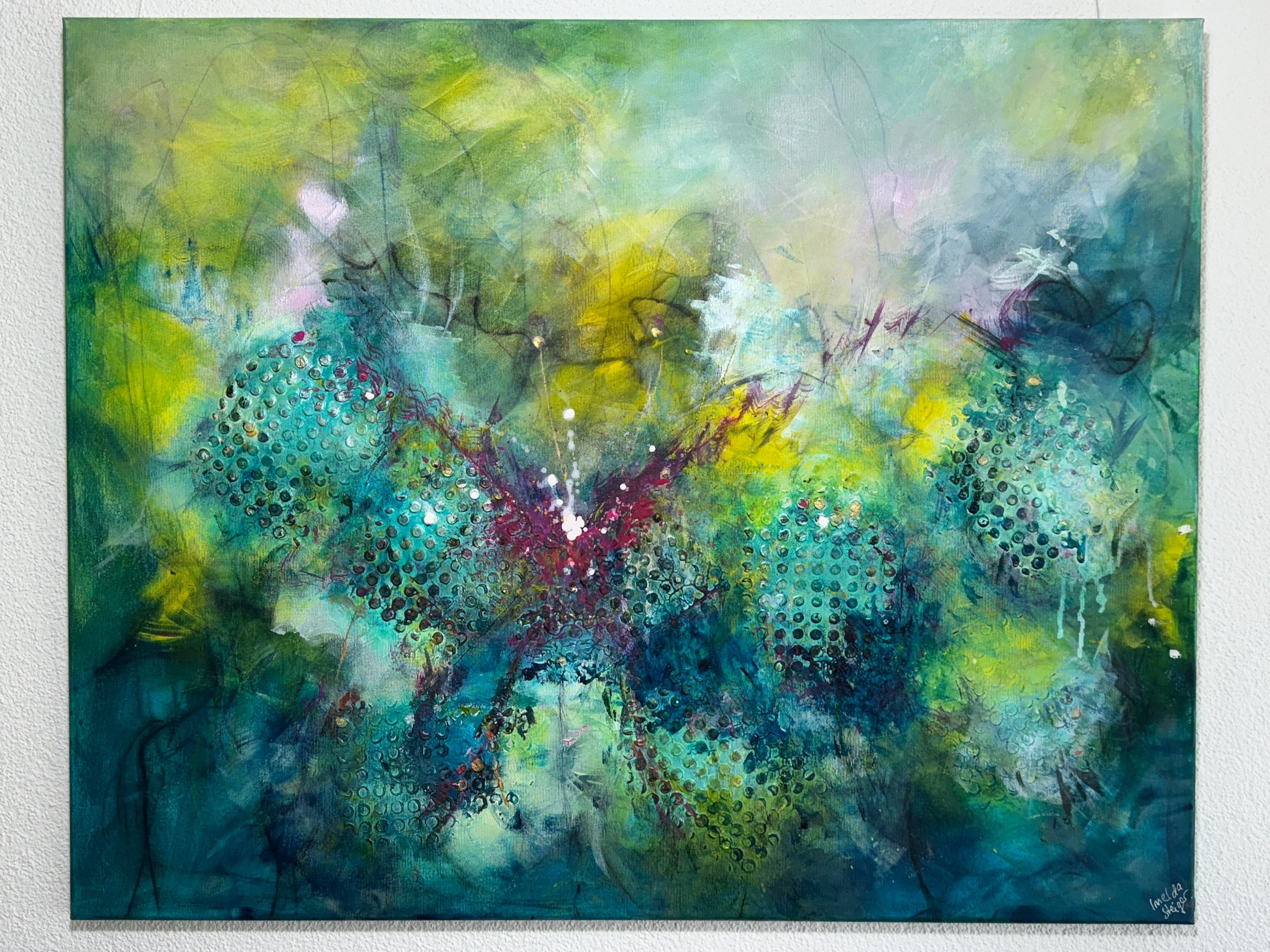 Wie ein Flügelschlag im Morgenlicht – kaum greifbar, fast ein Traum.In einem Meer aus schimmernden Farben erwacht ein Augenblick der Freiheit, zart und kostbar wie Kristall im Sonnenstrahl.